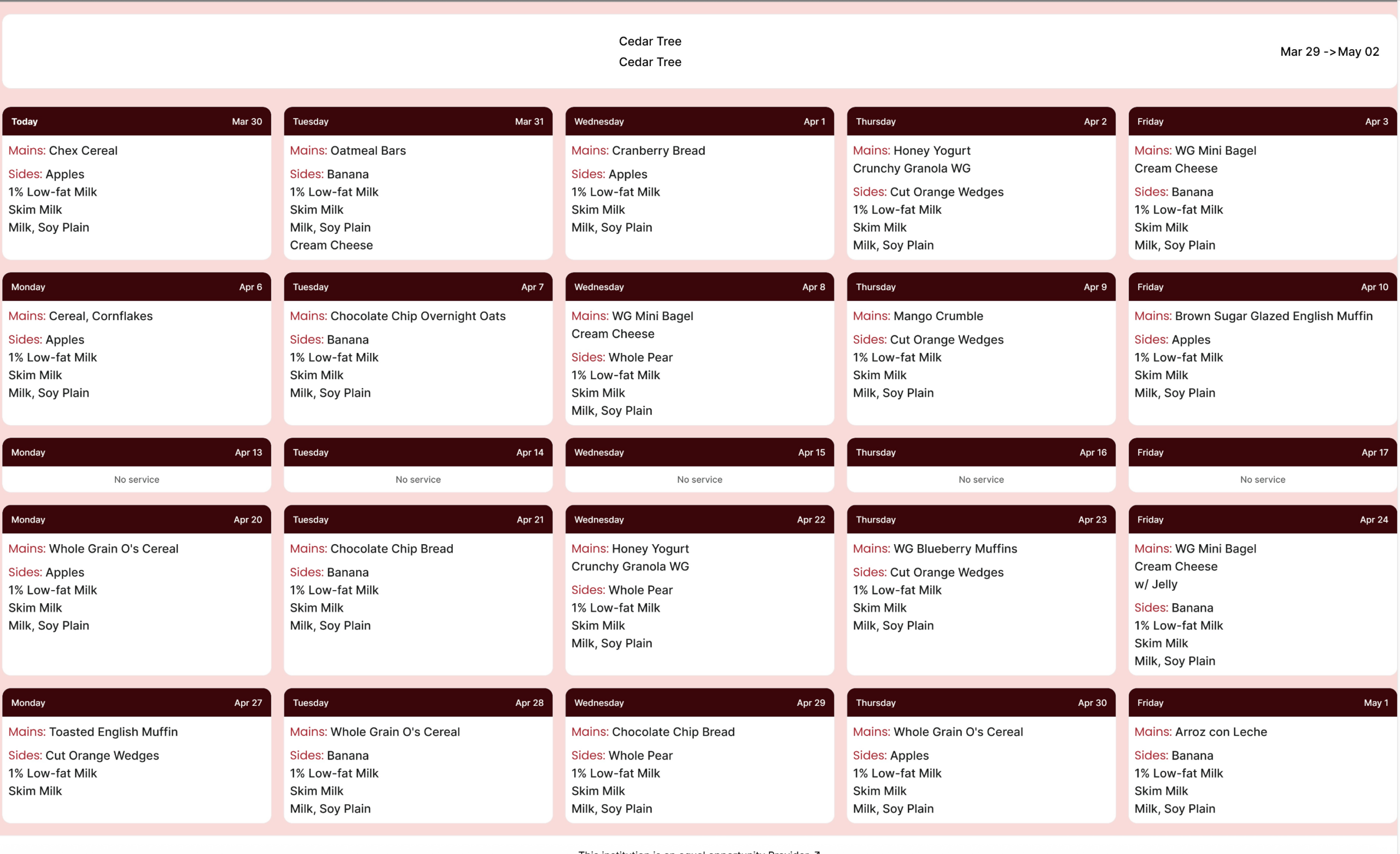CTA offers free breakfast, lunch and snack program